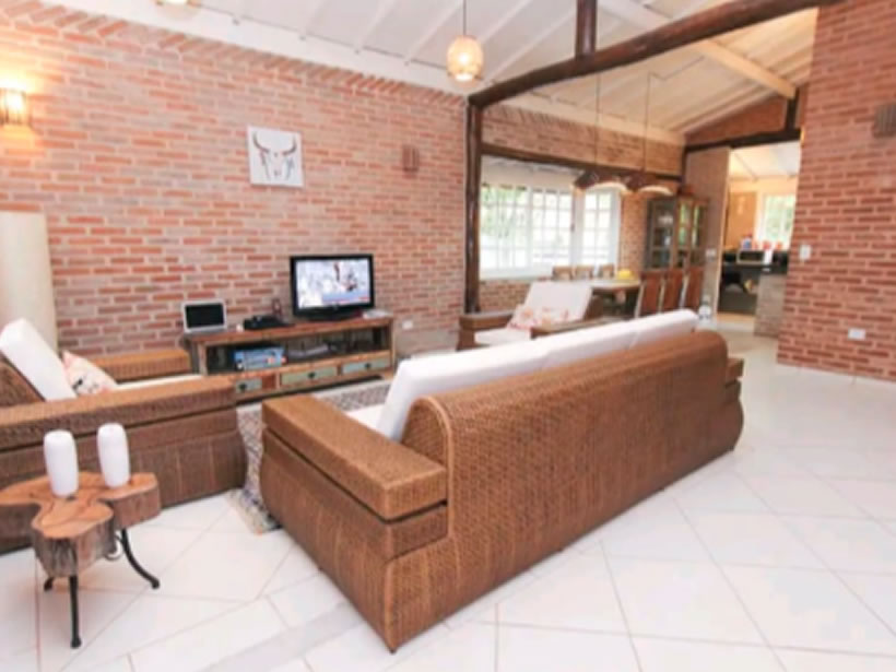 Cabana de arquitetura rústica moderna, localizada na praia de Juquehy em um condomínio em meio à natureza.