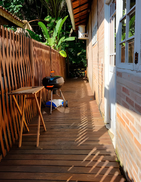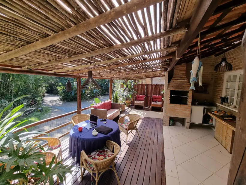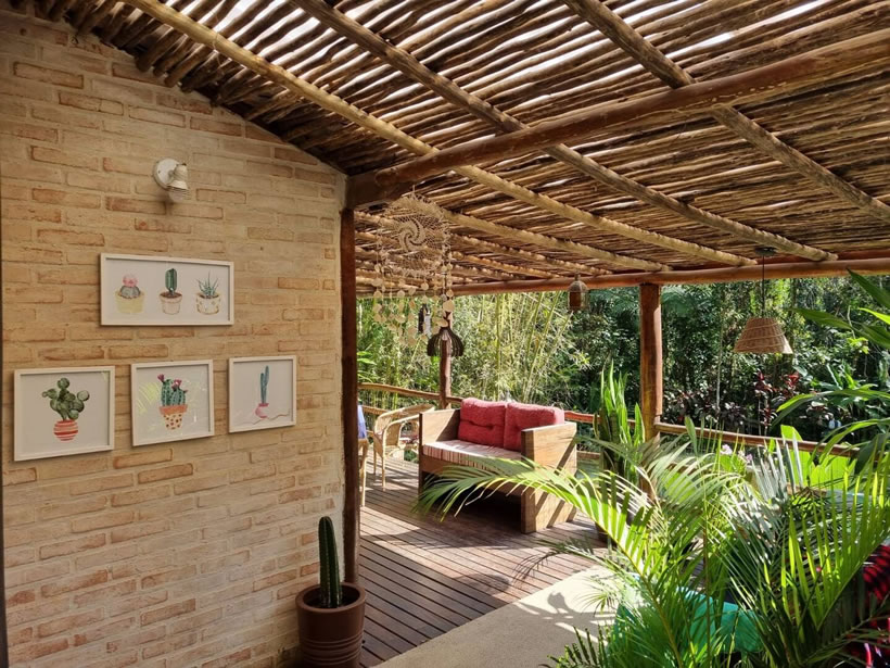 Cabana de arquitetura rústica moderna, localizada na praia de Juquehy em um condomínio em meio à natureza.